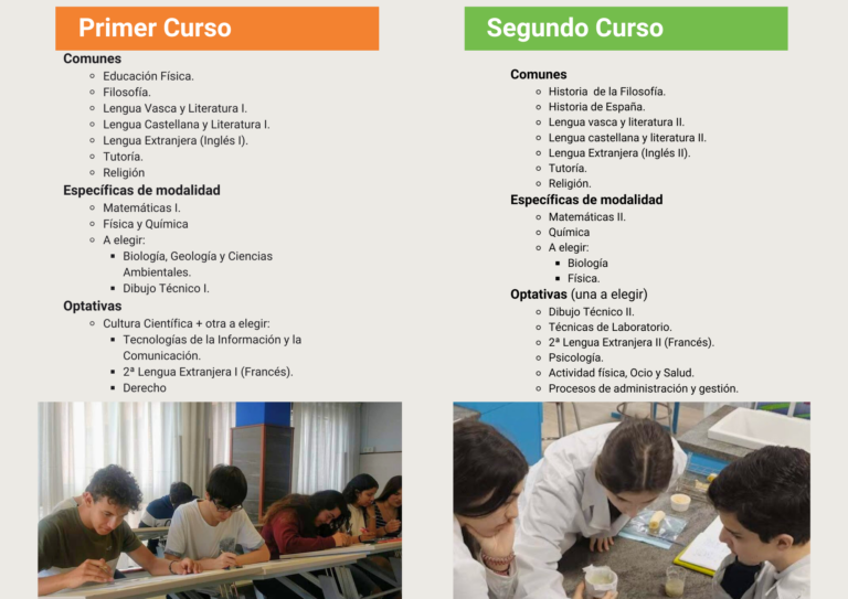 De esta manera, este bachillerato está orientado a toda persona interesada en Ciencias Biosanitarias (Grados de Medicina, Farmacia, Enfermería, Nutrición y Dietética, Psicología, Fisioterapia…), en Ciencias (Grados de Física, Matemáticas, Química, Biología…), Ingenierías y Arquitectura.